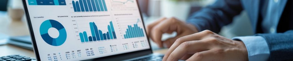 Seseorang menggunakan laptop di meja kerja dengan data dan grafik angka di layar, menunjukkan prediksi togel 4D online berdasarkan data terbaru.